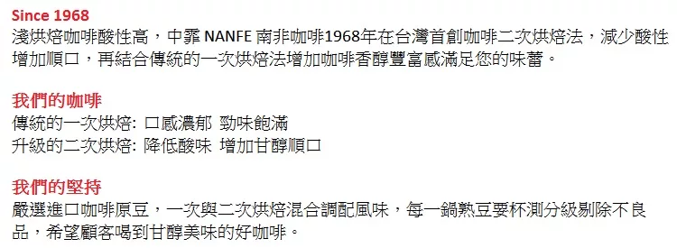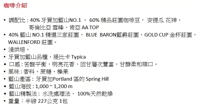→→→→更多詳細”【中霏NANFE咖啡_製造日在出貨4天內】 40% 藍山 NO.1 綜合風味 半磅 227公克 1包”介紹請點我